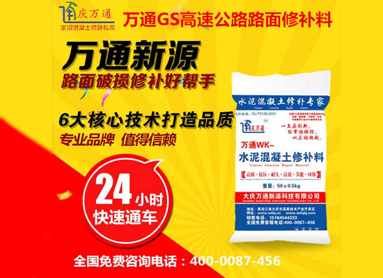 大慶萬通新源科技有限公司獨有的混凝土路面高強(qiáng)速補(bǔ)料,是水泥混凝土路面病害修復(fù)的好材料。疲勞、凍融循環(huán)、彎曲壓力、滲水和基層破壞等原因都會引起水泥路面的破損,從而帶來高昂的維護(hù)費用。與以往的剛性修補(bǔ)方法不同,混凝土水泥路面維修速補(bǔ)膠提供了一種獨特的柔性修補(bǔ)產(chǎn)品和技術(shù),高柔性、高抗拉性,可跨伸縮縫施工和高抗壓性使得混凝土快補(bǔ)產(chǎn)品為水泥混凝土路面提供了******性的修補(bǔ)。傳統(tǒng)的剛性修補(bǔ)方案,如環(huán)氧砂漿和快干水泥產(chǎn)品,由于其自身的粘結(jié)失效,抗疲勞性低以及與原路面不同的伸縮系數(shù),修補(bǔ)面會在短時間內(nèi)失效或產(chǎn)生新的裂縫,需要反復(fù)修補(bǔ),有效期短且費用高昂。大慶萬通新源科技有限公司的混凝土水泥路面維修速補(bǔ)膠可以隨原路面一起伸縮,移動,從而避免了粘結(jié)失效和產(chǎn)生新裂縫。萬通快補(bǔ)產(chǎn)品優(yōu)異的粘結(jié)性、柔韌性和高防滑性,特別適用于水泥路面的淺層粘合修補(bǔ),多邊角混凝土板層修補(bǔ),跨伸縮縫修補(bǔ)以及路面沉陷修補(bǔ)。萬通混凝土病害修補(bǔ)料針對混凝土起皮起沙、斷板裂縫、蜂窩麻面、坑槽露石子、漏筋掉皮、橋梁的掉皮漏筋快速通車使用時間長。應(yīng)用萬通快補(bǔ)產(chǎn)品,施工后一天就可以恢復(fù)交通。大慶萬通新源科技有限公司的萬通水泥路面維修速補(bǔ)膠適用于高速公路、機(jī)場路面、農(nóng)村村村通路面、廠坪、學(xué)校操場、市區(qū)公路、小區(qū)路面、橋梁、水泥路面的修補(bǔ)。使用萬通特快補(bǔ)材料修補(bǔ)路面可以一勞永逸! 水泥地面起砂怎么辦,混凝土修補(bǔ)劑混凝土地面起砂,混凝土地面修補(bǔ),地面起砂怎么辦,
